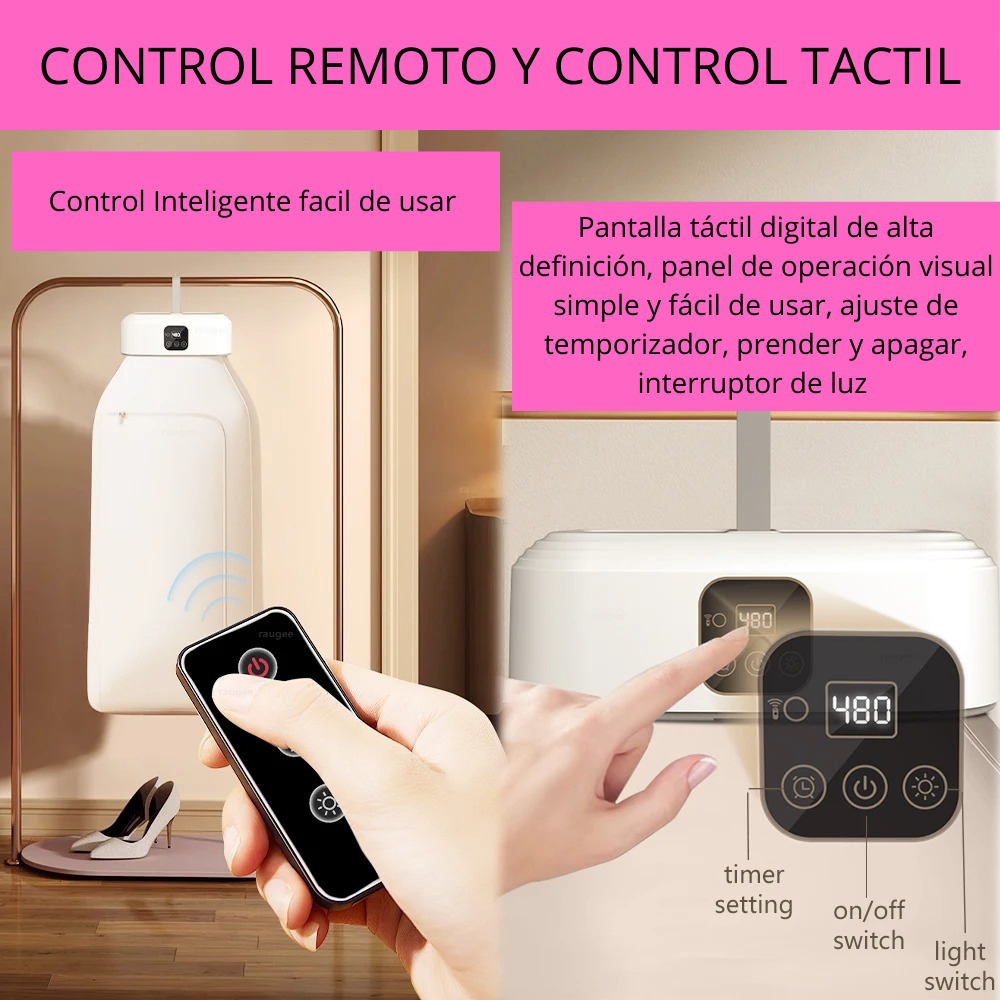 Con 600W de potencia y 2 modos de temperatura, seca hasta 8 prendas finas a la vez. Además, cuenta con temporizador inteligente (1H/2H/8H) para que no tengas que preocuparte mientras hace su trabajo.